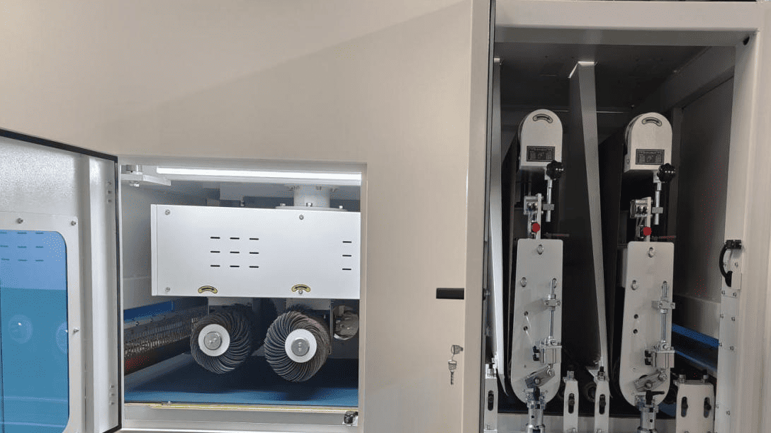 Mesin deburring dan chamfering dirancang khusus untuk pengolahan permukaan komponen baja karbon. Ini fitur kombinasi inovatif dari dua set sabuk abrasif luas untuk deburring dan empat sikat rotary universal untuk chamfering. Desain ini memastikan penghapusan gerombolan permukaan yang efisien dan tepat sambil mencapai talang tepi dan menyikat permukaan, secara signifikan meningkatkan kualitas permukaan dan penampilan benda kerja. Mesin Deburring & Menyikat memenuhi persyaratan presisi dan kualitas perlakuan permukaan baja karbon di berbagai industri, meningkatkan efisiensi produksi dan nilai produk. Parameters can be adjusted according to different processing needs, and suitable abrasives can be selected accordingly. The metal deburring machine is equipped with one 5.5kW wet dust collector. Metode Penghapusan Debu: Debu yang dihasilkan selama operasi secara efektif diekstraksi melalui port pengumpulan debu, menghilangkan sebagian besar debu, mencegah potensi bahaya ledakan debu, dan menjaga struktur internal tetap bersih.