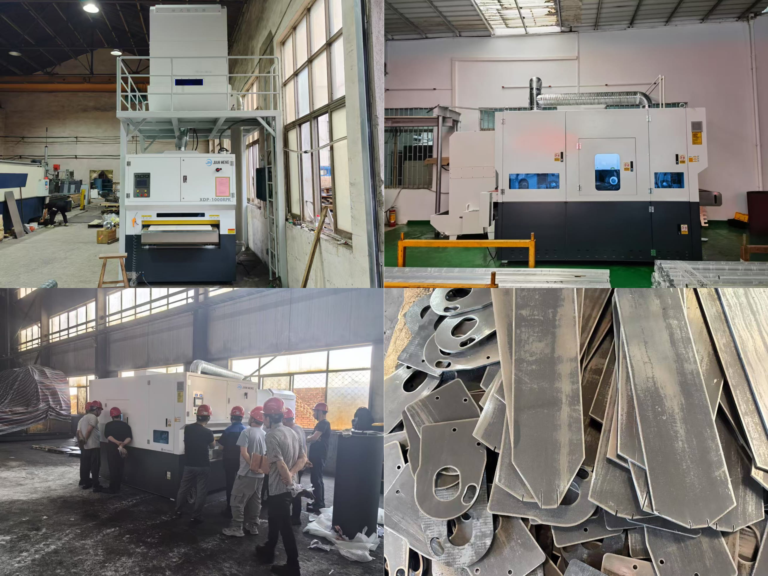 Seorang pelanggan menggunakan mesin pemotong laser 6kW untuk memproses pelat baja karbon setebal 20mm, yang mengakibatkan gerombolan berat di sepanjang tepi, mempengaruhi pengelasan berikutnya dan kualitas pelapisan. Untuk mengatasi masalah ini, mesin deburring dan chamfering kami yang dilengkapi dengan sabuk abrasif yang luas dan kuas rotary universal digunakan untuk pengujian. Dalam satu umpan, mesin secara efisien menghilangkan gerinda dari pelat tebal, sementara secara bersamaan mencapai talang tepi yang seragam dan permukaan yang disikat. Hasilnya menunjukkan tepi yang halus dan bebas duri dan penampilan permukaan yang ditingkatkan secara signifikan. Pelanggan sangat puas dengan hasilnya, mencatat peningkatan substansial dalam efisiensi dan konsistensi untuk pemrosesan pelat tebal. Mesin ini mendukung penyesuaian parameter yang fleksibel dan sangat ideal untuk deburring dan finishing permukaan dari berbagai bahan logam tebal.
